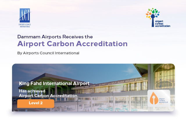 Dammam Airports is proud to announce that its airports have achieved Airport Carbon Accreditation (ACA) certifications from Airports Council International (ACI). King Fahd International Airport has advanced to Level 2 accreditation, building on Level 1 achieved in 2024